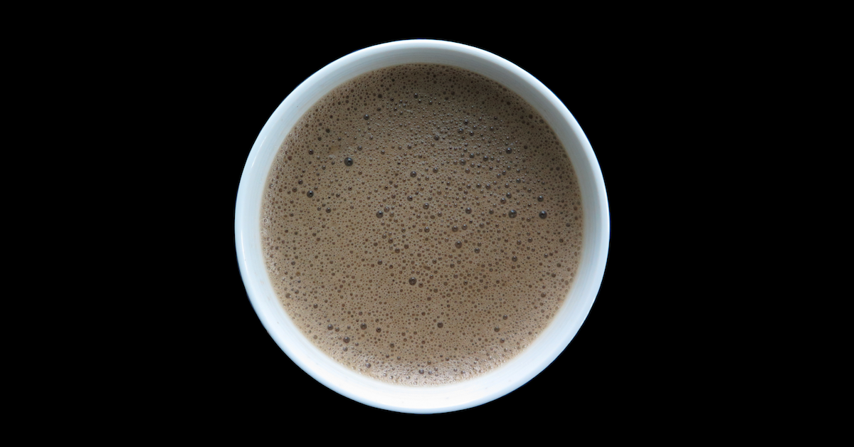 Steam and add 180 ml (6 oz) of milk of your choice to the whisked hojicha.
